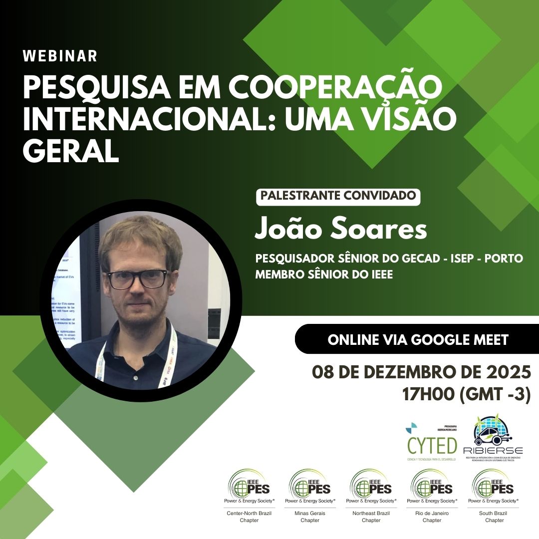Palestra sobre cooperação internacional, a ser proferida pelo pesquisador da rede João Soares tendo como host o Prof. Bruno Dias. Este evento é realizado em conjunto com IEEE. El director ha sido el p