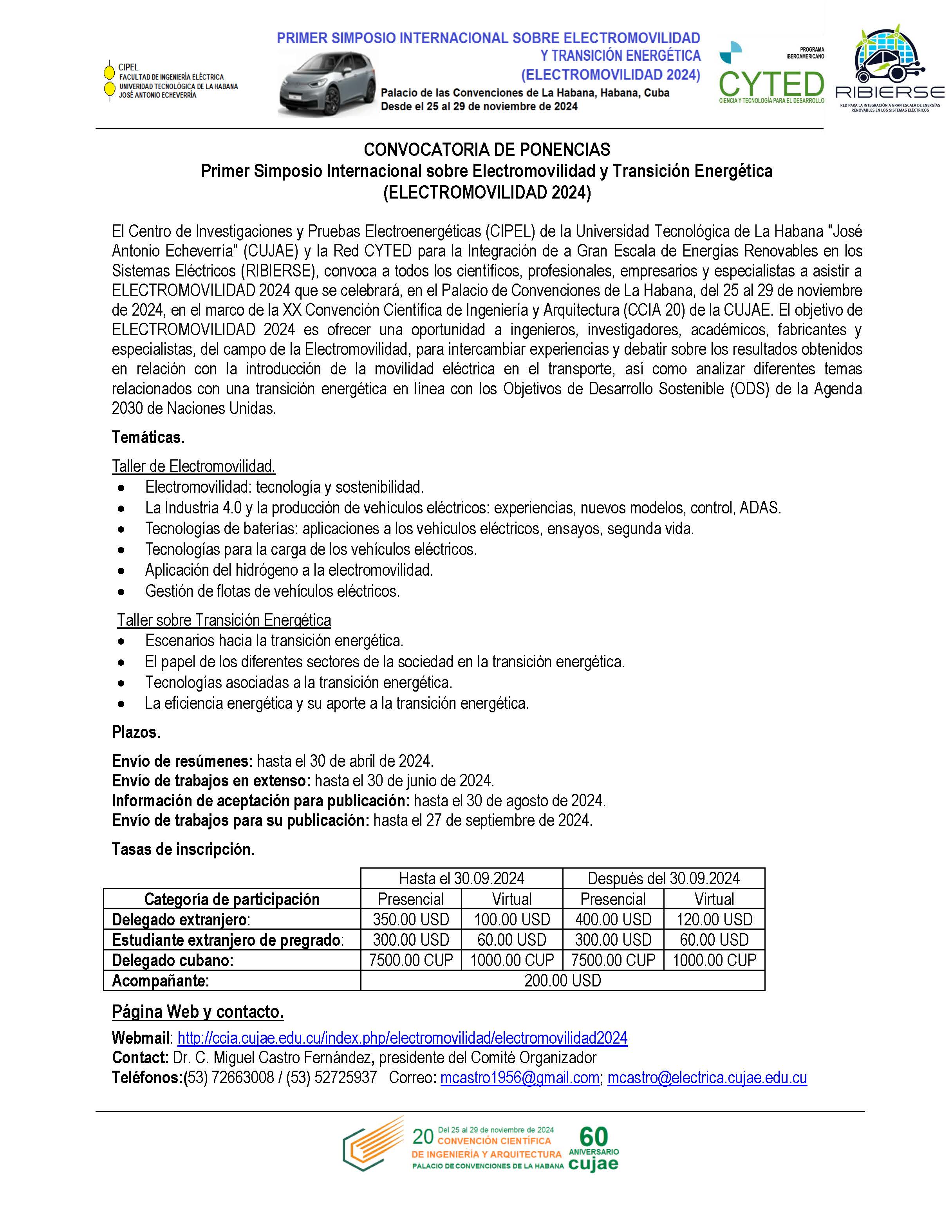 El Centro de Investigaciones y Pruebas Electroenergéticas (CIPEL) de la Universidad Tecnológica de La Habana "José Antonio Echeverría" (CUJAE) y la Red CYTED para la Integración de a Gran Escala de En