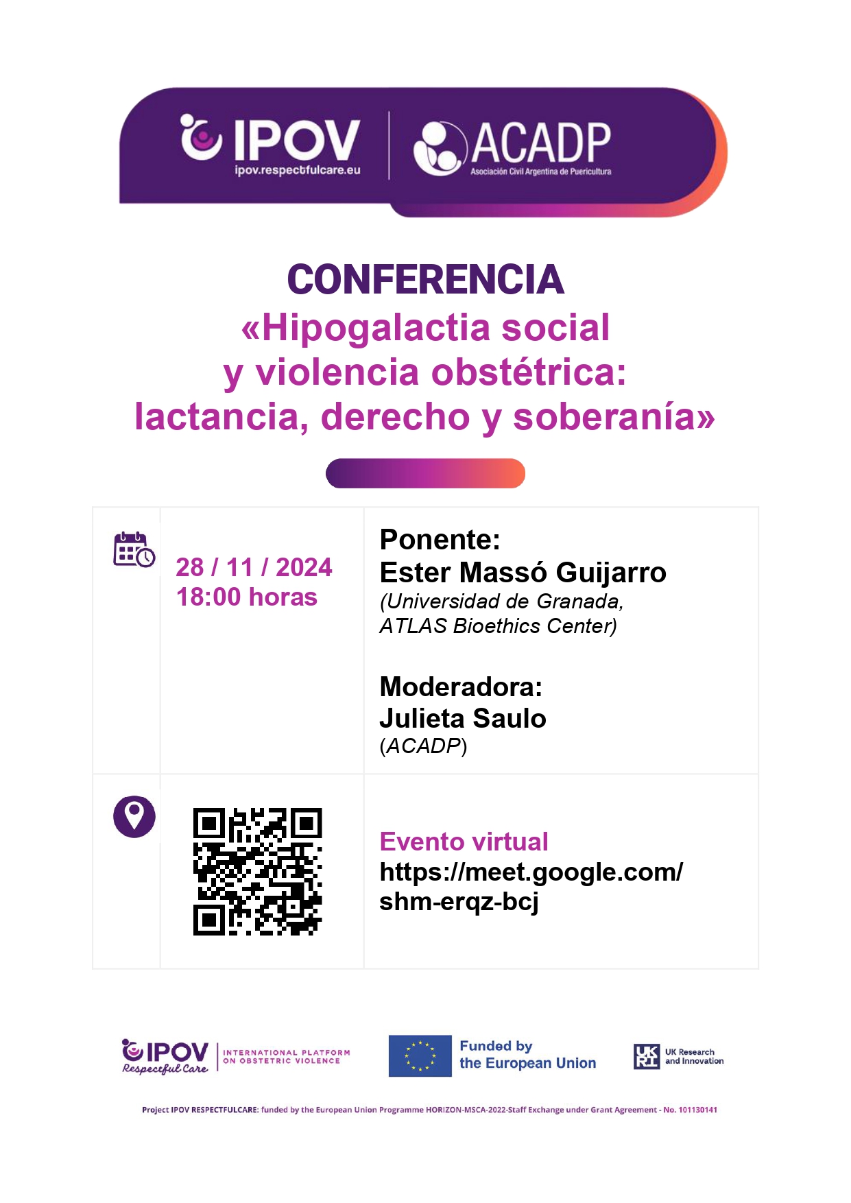 El próximo 23 de enero se celebrará la Conferencia inaugural del proyecto IPOV-RESPECTFUL CARE: "Violencia obstétrica (IPOV): una herramienta innovadora para una atención respetuosa de la maternidad y