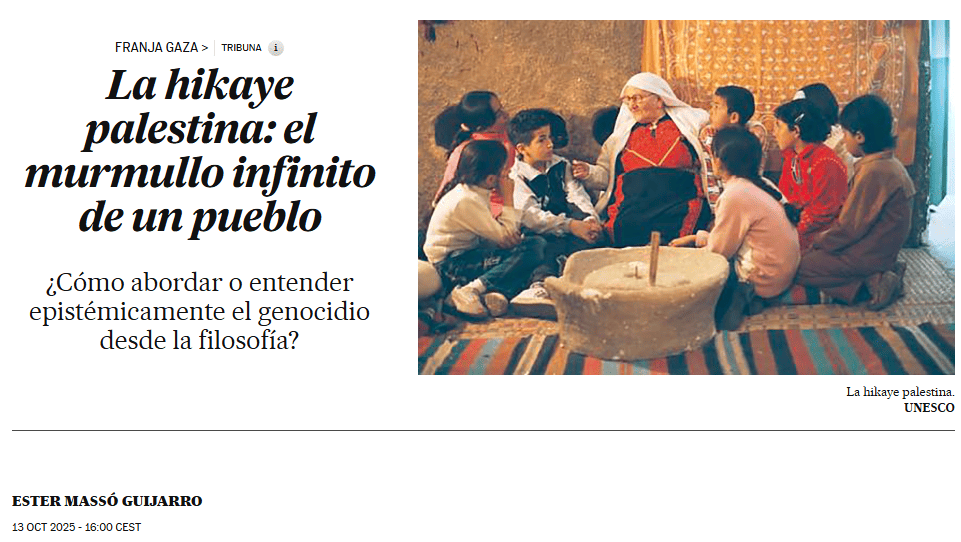 El pasado 13 de octubre de 2025, nuestra compañera Ester Massó Guijarro, investigadora de LIBERESP (nodo España), publicó en el diario El País el artículo titulado «La hikaye palestina, el murmullo in