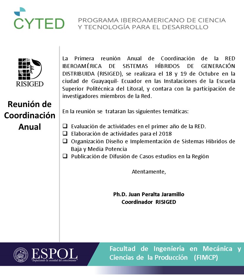Reunion de Coordinacion Red Iberoamérica de Sistemas híbridos de generación distribuida (RISIGED)