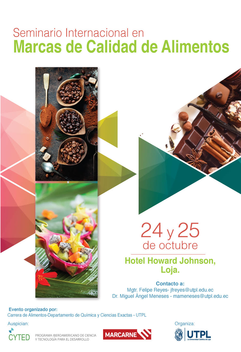 Descripción/Objetivos de la actividad: Seminario - promovido por la Red MARCARNE con la Universidad Católica de Loja (UTPL) con ocasión de la reunión anual de la Red MARCARNE - sobre marcas de calidad alimentaria con especial énfasis en carne y productos cárnicos en particular carne de cuy.