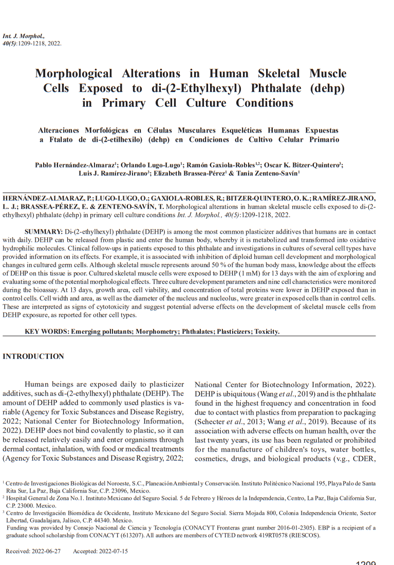 Morphological Alterations in Human Skeletal Muscle Cells Exposed to di-(2-Ethylhexyl) Phthalate (dehp) in Primary Cell Culture Conditions