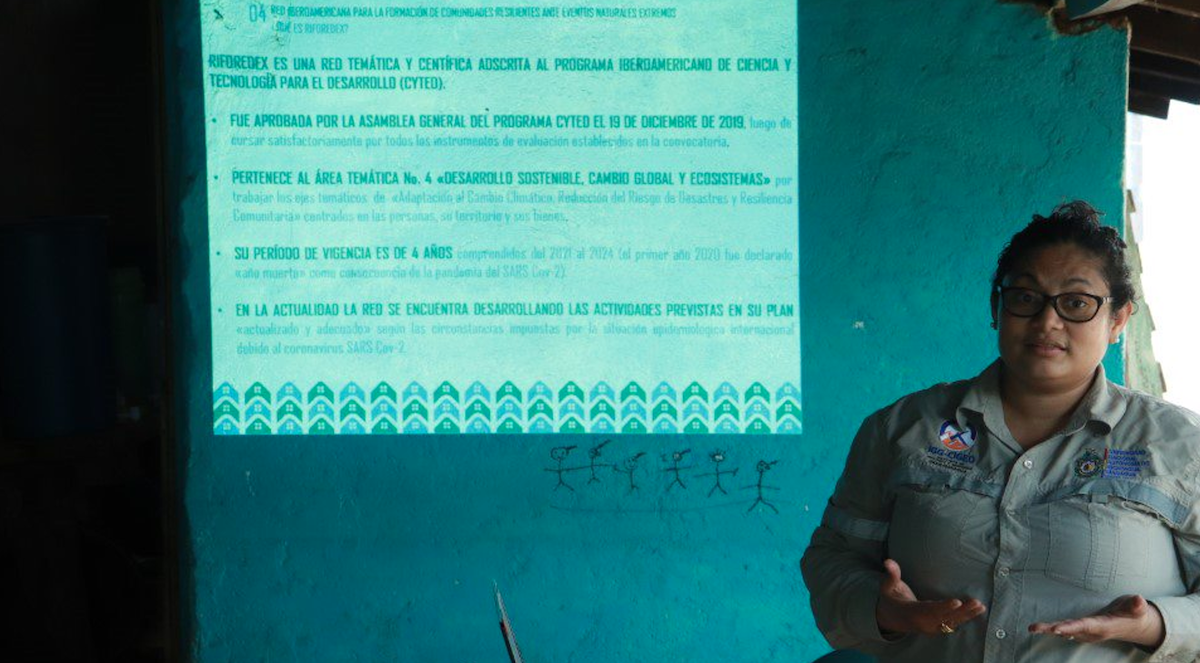 La MSc. Marjorie Toruño presenta el proyecto de la Red Iberoamericana para la Formación de Comunidades Resilientes ante Eventos Naturales Extremos (RIFOREDEx).