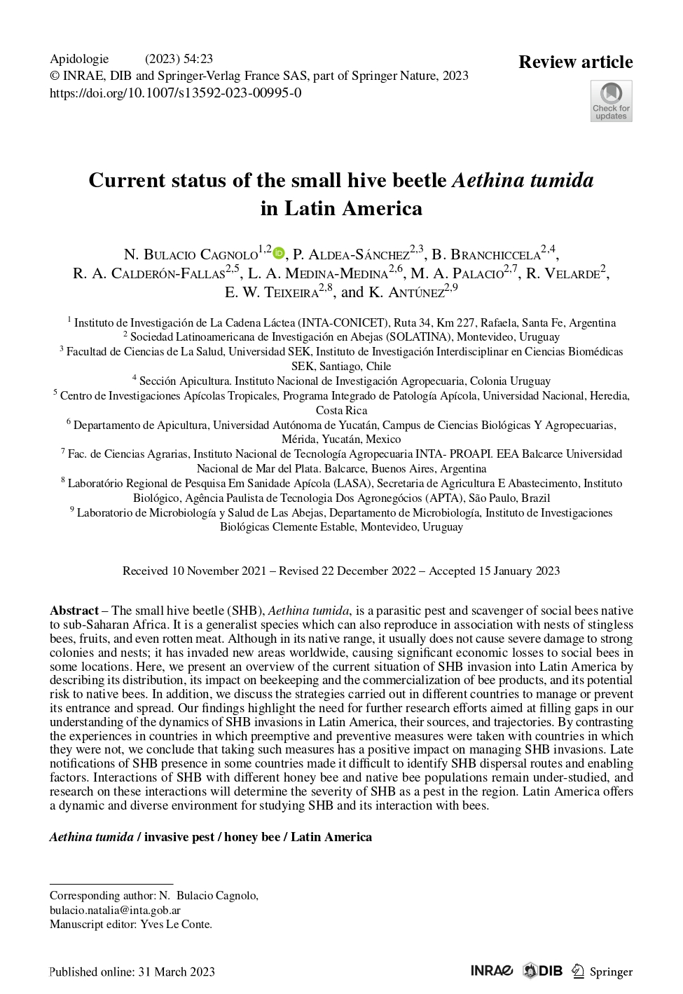 Current status of the small hive beetle Aethina tumida in Latin America