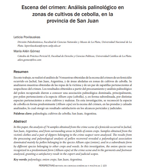 Escena del crimen: Análisis palinológico en zonas de cultivos de cebolla, en la provincia de San Juan