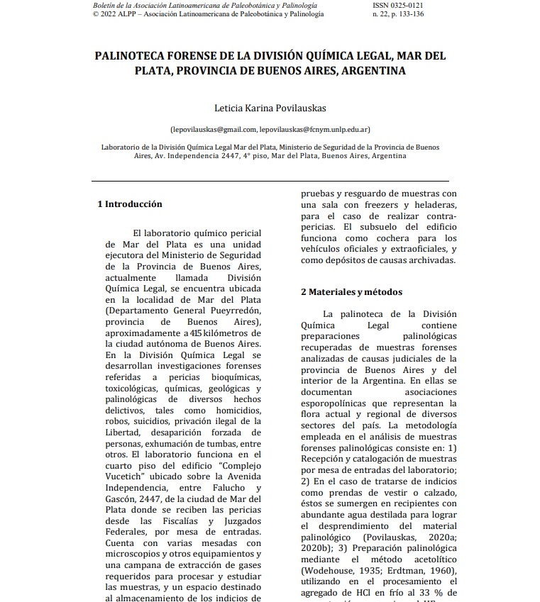Palinoteca forense de la División Química Legal, Mar del Plata, Provincia de Buenos Aires, Argentina.