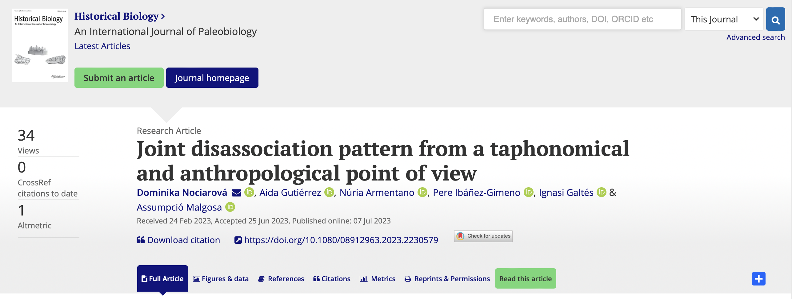 Joint disassociation pattern from a taphonomical and anthropological point of view