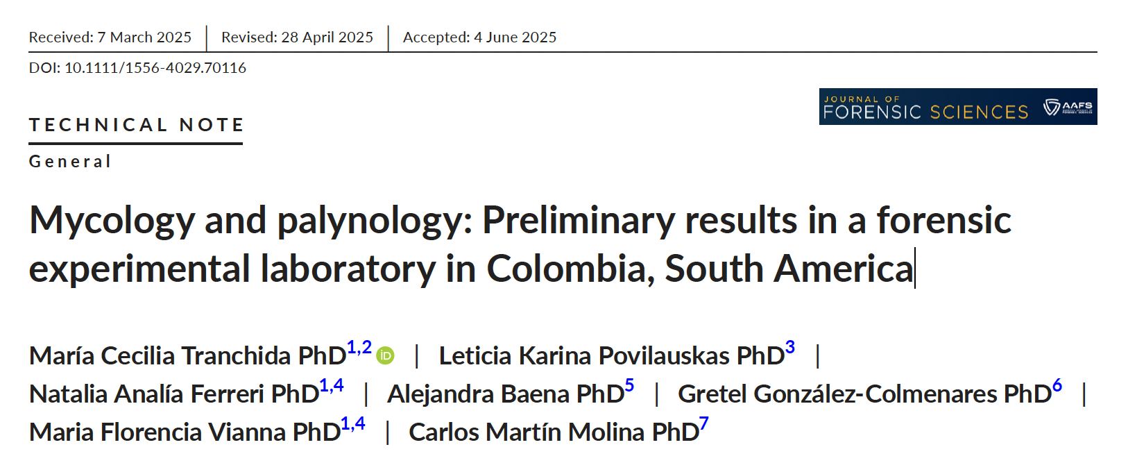 Mycology and palynology: Preliminary results in a forensic experimental laboratory in Colombia, South America