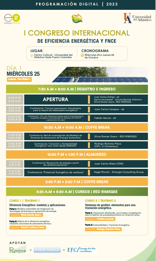 La `programación definitiva será actualizada; se contará con la presencia de expertos que impartirán sesiones formativas en cuestiones como la eficiencia energética, la producción sostenible de energía y su distribución y la disminución de consumos, así como la combinación integrada de sistemas de producción para alcanzar sinergias, y el modelo de isla energética.