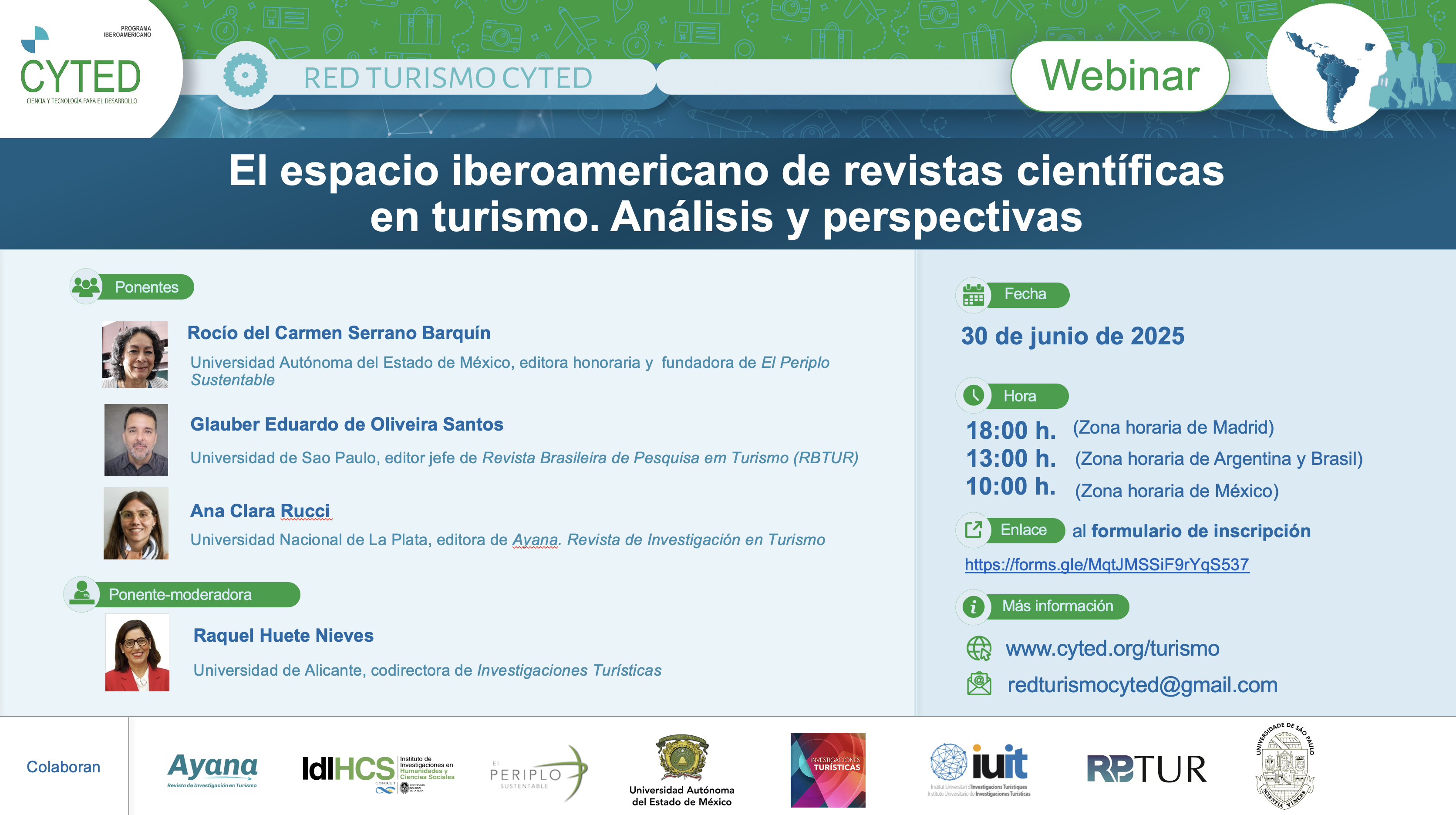 WEBINAR: EL ESPACIO IBEROAMERICANO DE REVISTAS CIENTÍFICAS EN TURISMO. ANÁLISIS Y PERSPECTIVAS