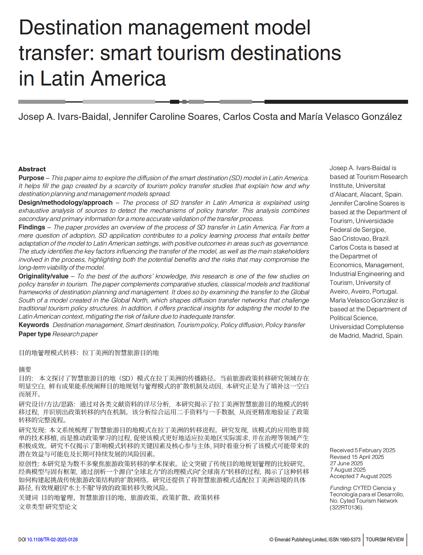 Experiencias, aprendizajes y perspectivas de los Destinos Turísticos Inteligentes en Iberoamérica