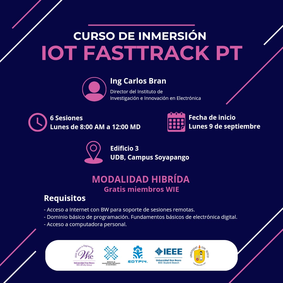 El taller inmersión , proporciona una visión general de los conceptos y desafíos de la economía digital moderna donde las personas, procesos, datos y cosas se conectan. Los contenidos del curso se enfocan en desarrollar habilidades de forma rápida con simuladores y una plataforma de bajo costo de controladores IoT, sensores y actuadores que puedan interactuar con plataforma de procesamiento de datos para mejorar la toma de decisiones en el comercio, la industria y la vida social en general.