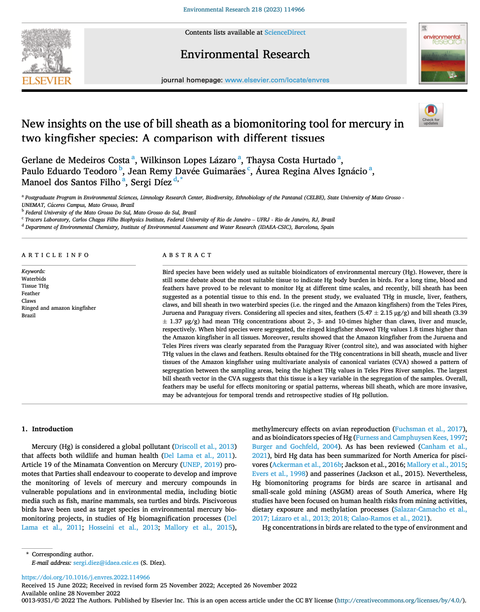 New insights on the use of bill sheath as a biomonitoring tool for mercury in two kingfisher species: A comparison with different tissues