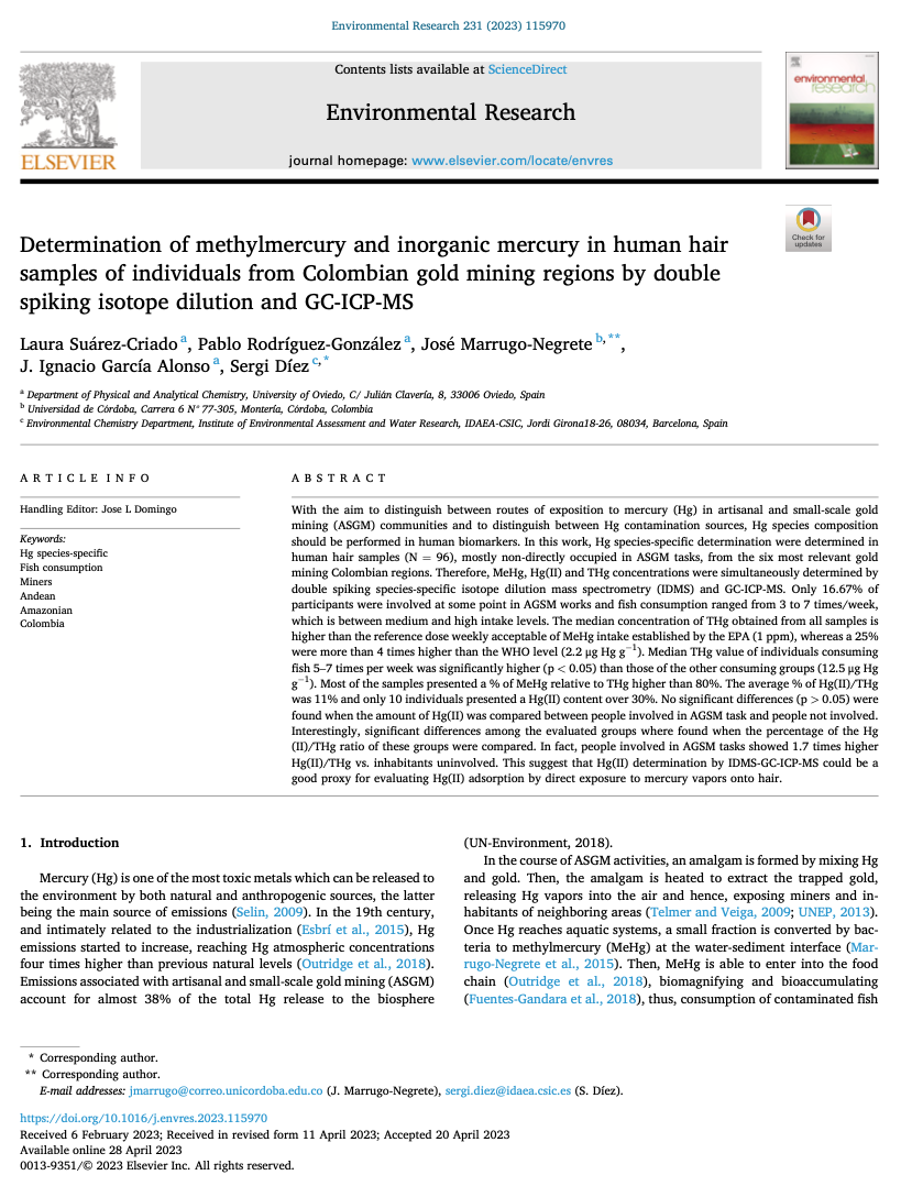 Determination of methylmercury and inorganic mercury in human hair samples of individuals from Colombian gold mining regions by double spiking isotope dilution and GC-ICP-MS