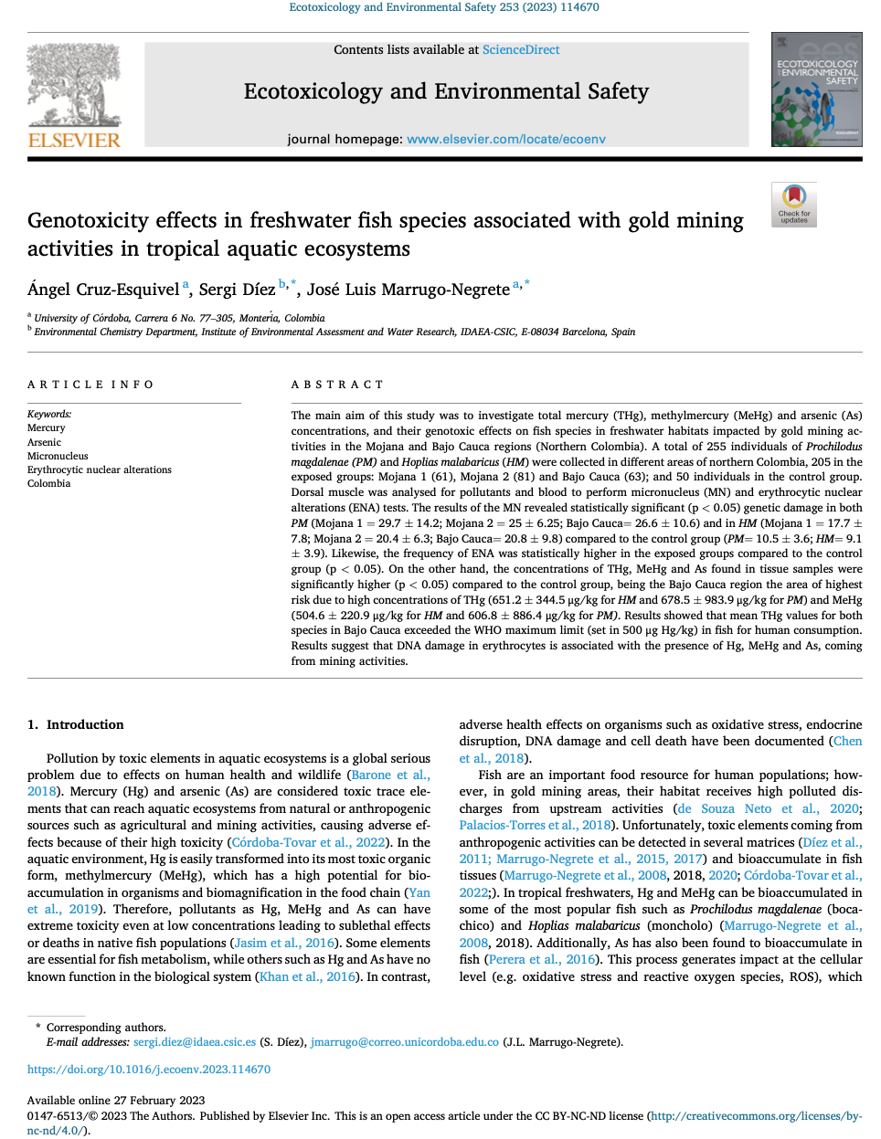 Genotoxicity effects in freshwater fish species associated with gold mining activities in tropical aquatic ecosystems