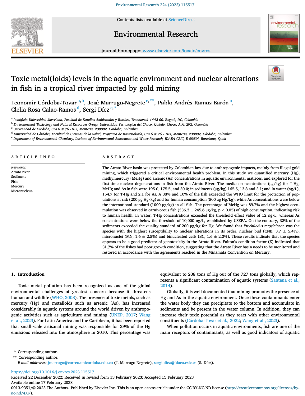Influence of environmental and biological factors on mercury accumulation in fish from the Atrato River Basin, Colombia
