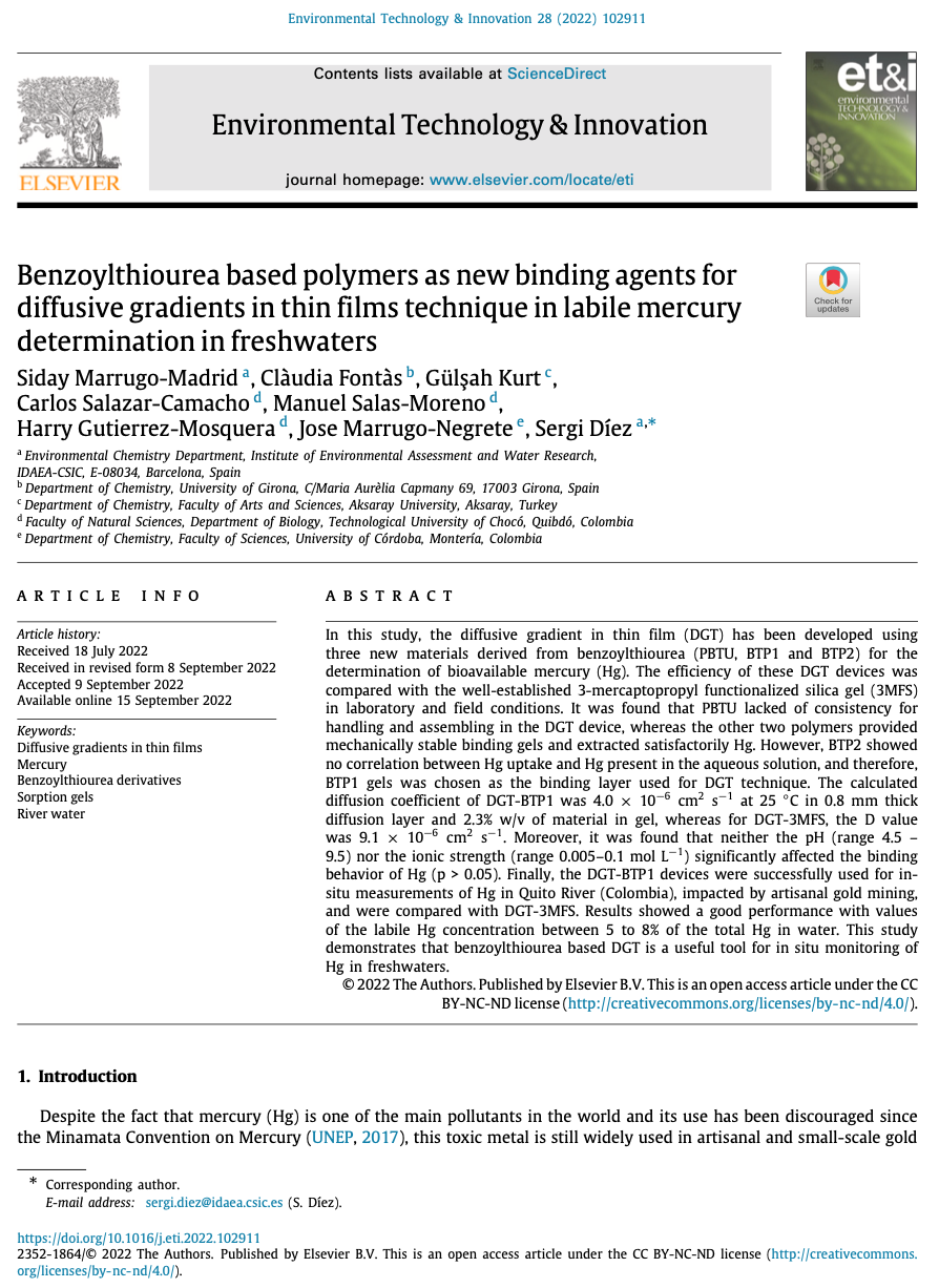 Evaluation of novel biomass-derived materials as binding layers for determining labile mercury in water by diffusive gradient in thin-films technique