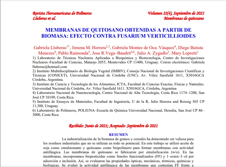 Membranas de quitosano obtenidas a partir de biomasa: Efecto contra Fusarium Verticillioides