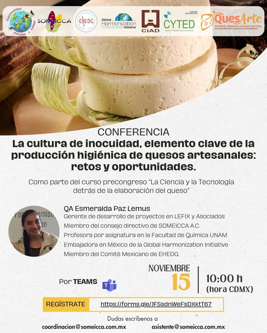 Registro a la conferencia. La cultura de inocuidad, elemento clave de la producción higiénica de quesos artesanales: retos y oportunidades.