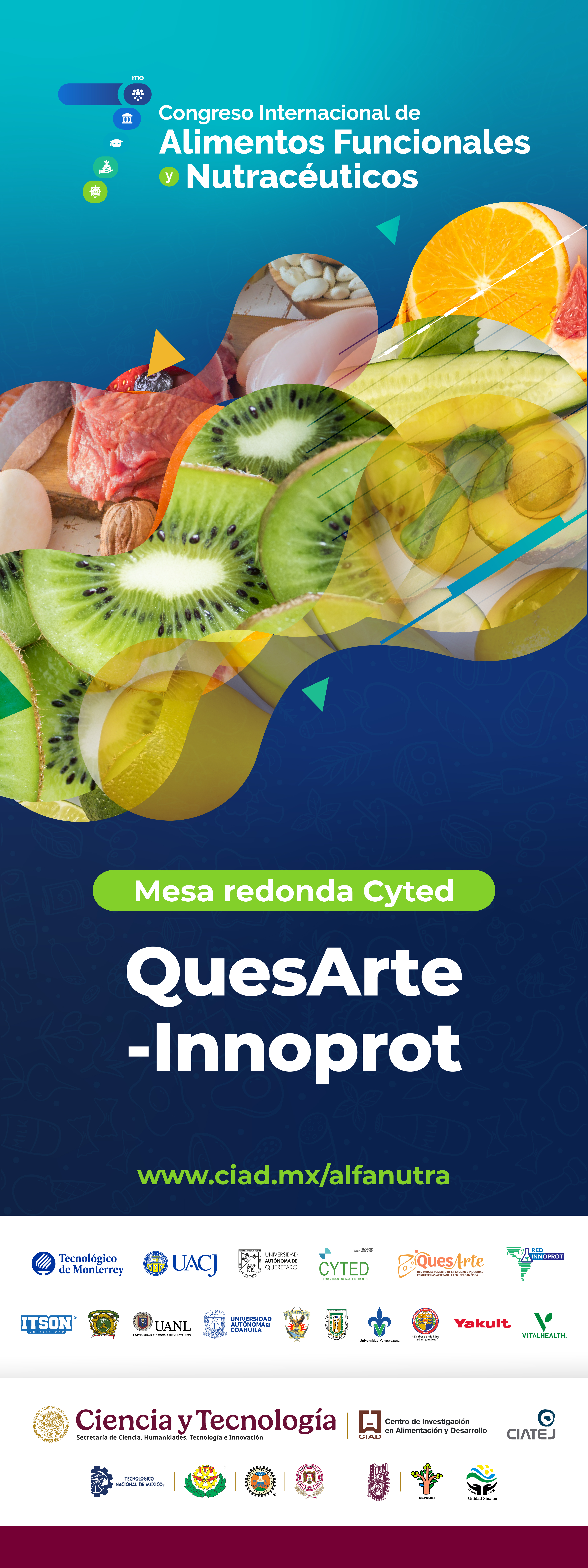 En el marco del 7mo Congreso Internacional de Alimentos Funcionales y Nutracéuticos, celebrado en Hermosillo, Sonora, se realizará la mesa redonda entre dos redes CYTED QuesArte/INNOPROT