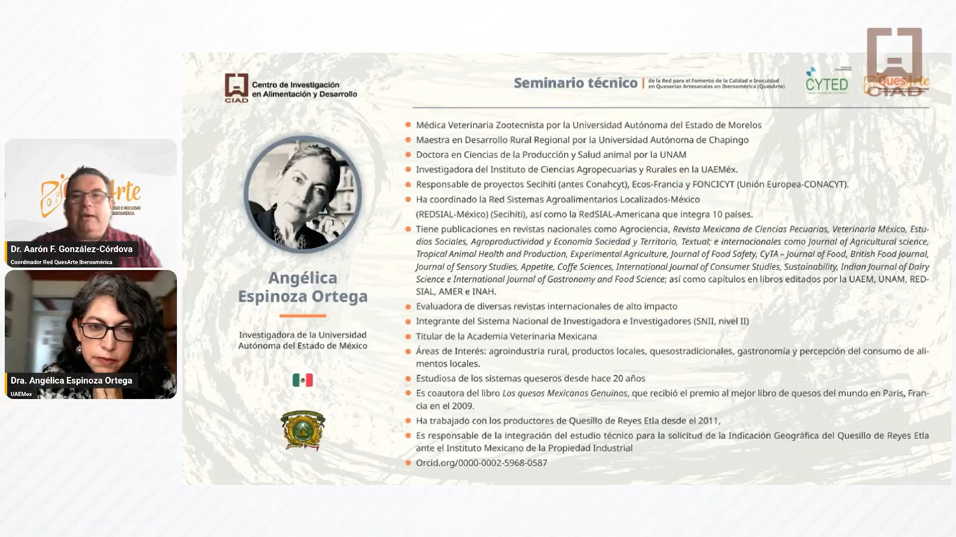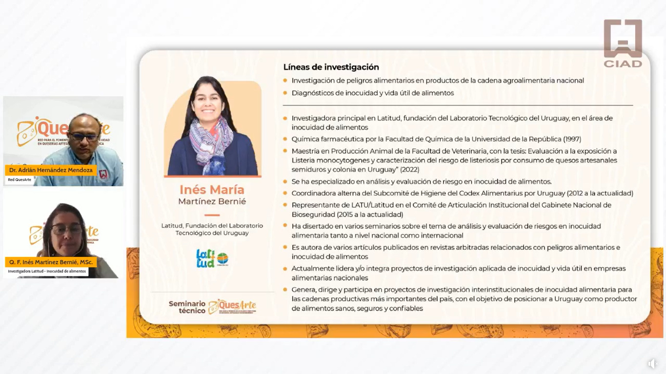 Como parte de los objetivos de divulgar el conocimiento técnico para la quesería artesanal y de las acciones de vinculación e intercambio de especialistas de la red para el fomento de la calidad e inocuidad en queserías artesanales en Iberoamérica (QuesArte Iberoamérica), la Dra. Silvana Beatriz Carro Techera, profesora de la Facultad de Medicina Veterinaria de la Universidad de la República (UdelaR) del Uruguay, estuvo en México del 23 de mayo al 2 de junio del año en curso. Como parte de sus actividades, durante este período visitó el Centro de Investigación en Alimentación y Desarrollo (CIAD), centro público del Consejo Nacional de Humanidades Ciencias y Tecnologías (Conahcyt), con sede en Hermosillo, Sonora, además de la Universidad Autónoma del Estado de México (UAEM), ubicada en la ciudad de Toluca.