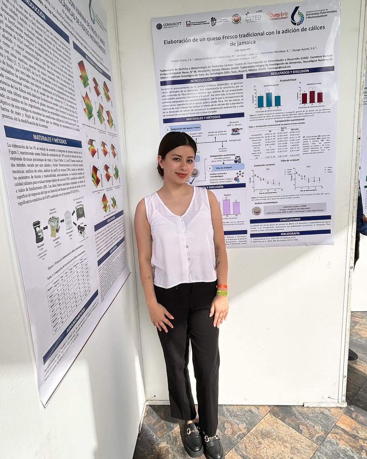 La estudiante de Licenciatura Leyna Valeria Vidal-Ornelas presentó el trabajo intitulado " Quesos artesanales: Alimentos con actividad antioxidante e Inhibición de la enzima Lipooxigenasa" en modalidad de póster. Actividades Congreso CUCCAL 17-SOMEICA 2024