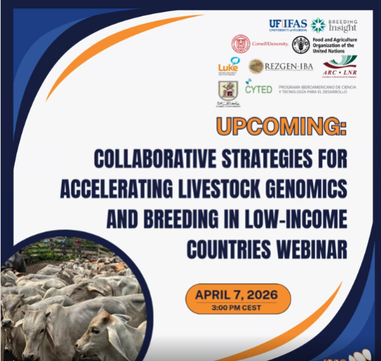 ISAG's Food and Agriculture Organization of the United Nations (FAO) Advisory Group on Animal Genetic Diversity and Livestock Genomics for Developing Countries Committee, the event will take place on April 7, 2026, at 3:00 p.m. Central European Summer Time (CEST). The webinar will be recorded if you can?t make the live event--stay tuned for more information!