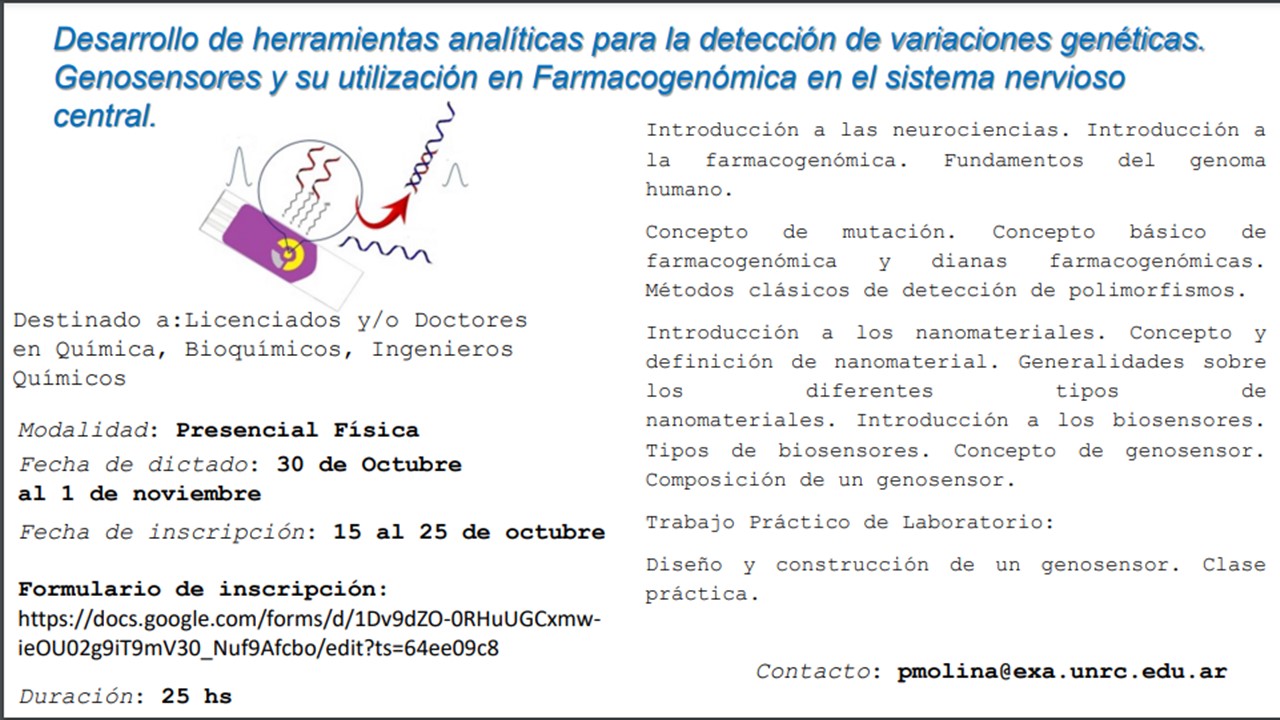 Curso presencial: Desarrollo de herramientas analíticas para la detección de variaciones genéticas. Genosensores y su utilización en Farmacogenómica en el sistema nervioso central.