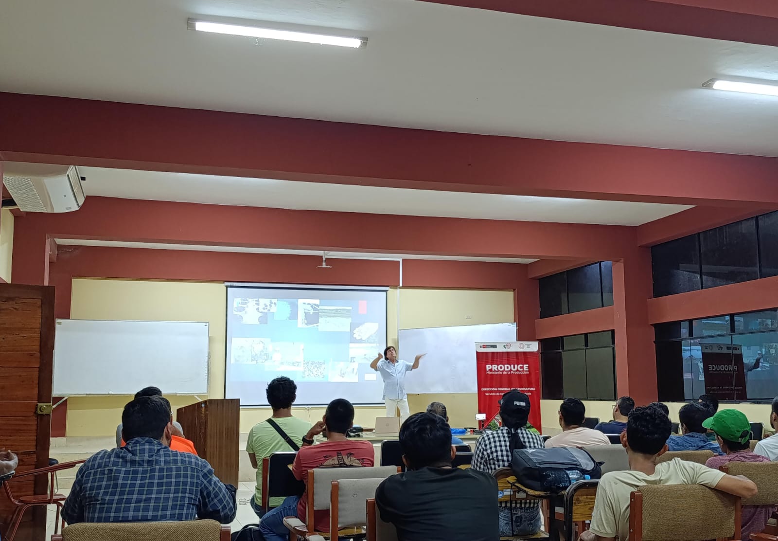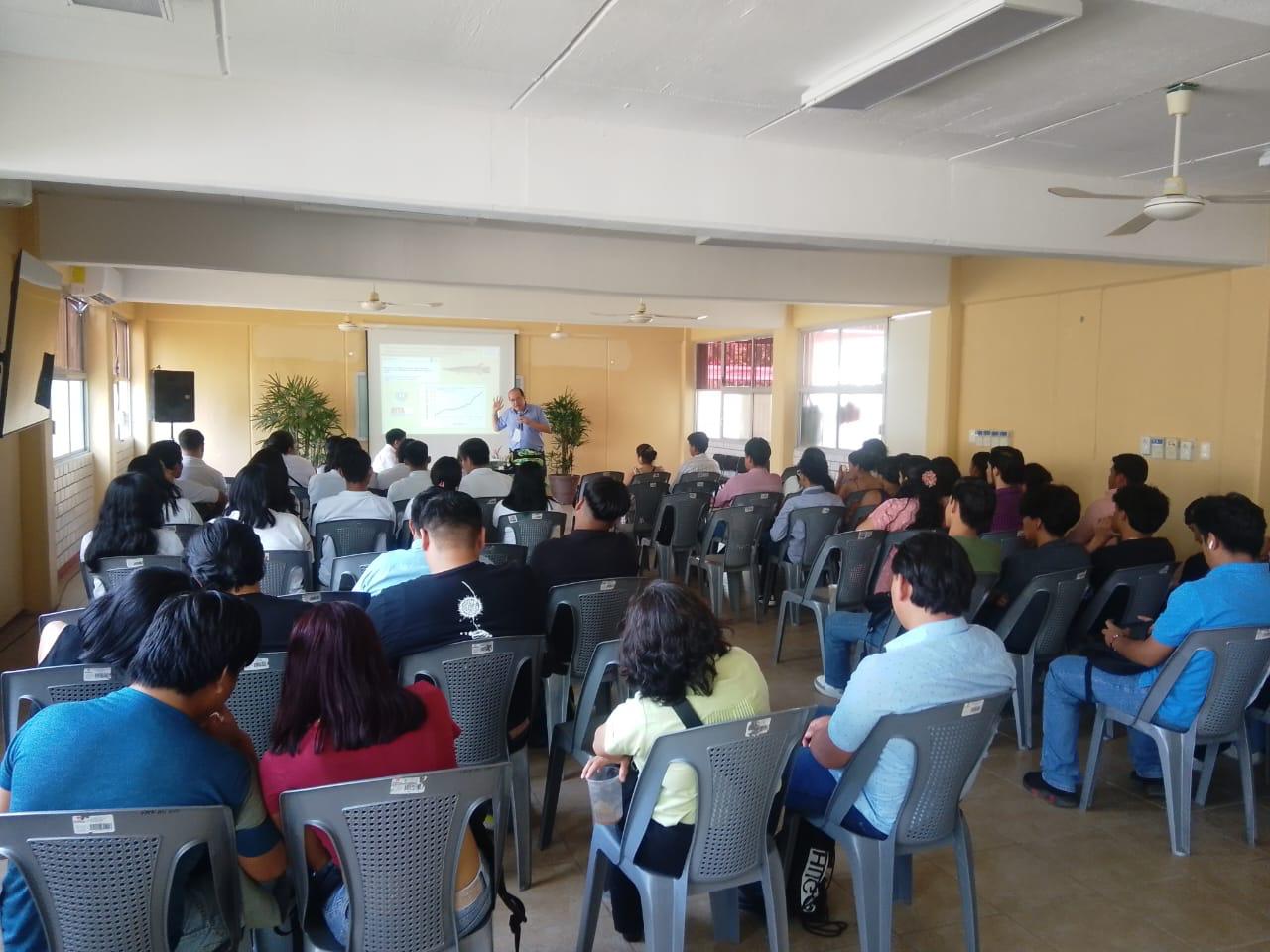 Jose Carlos Gastelú Guzmán capacitando sobre el cultivo de camarón de Malasia
