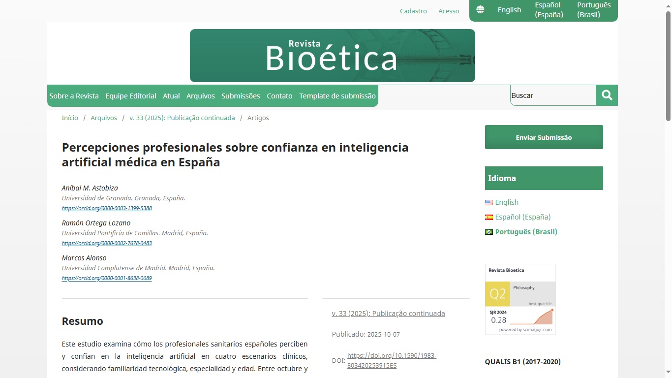 Percepciones profesionales sobre confianza en inteligencia artificial médica en España