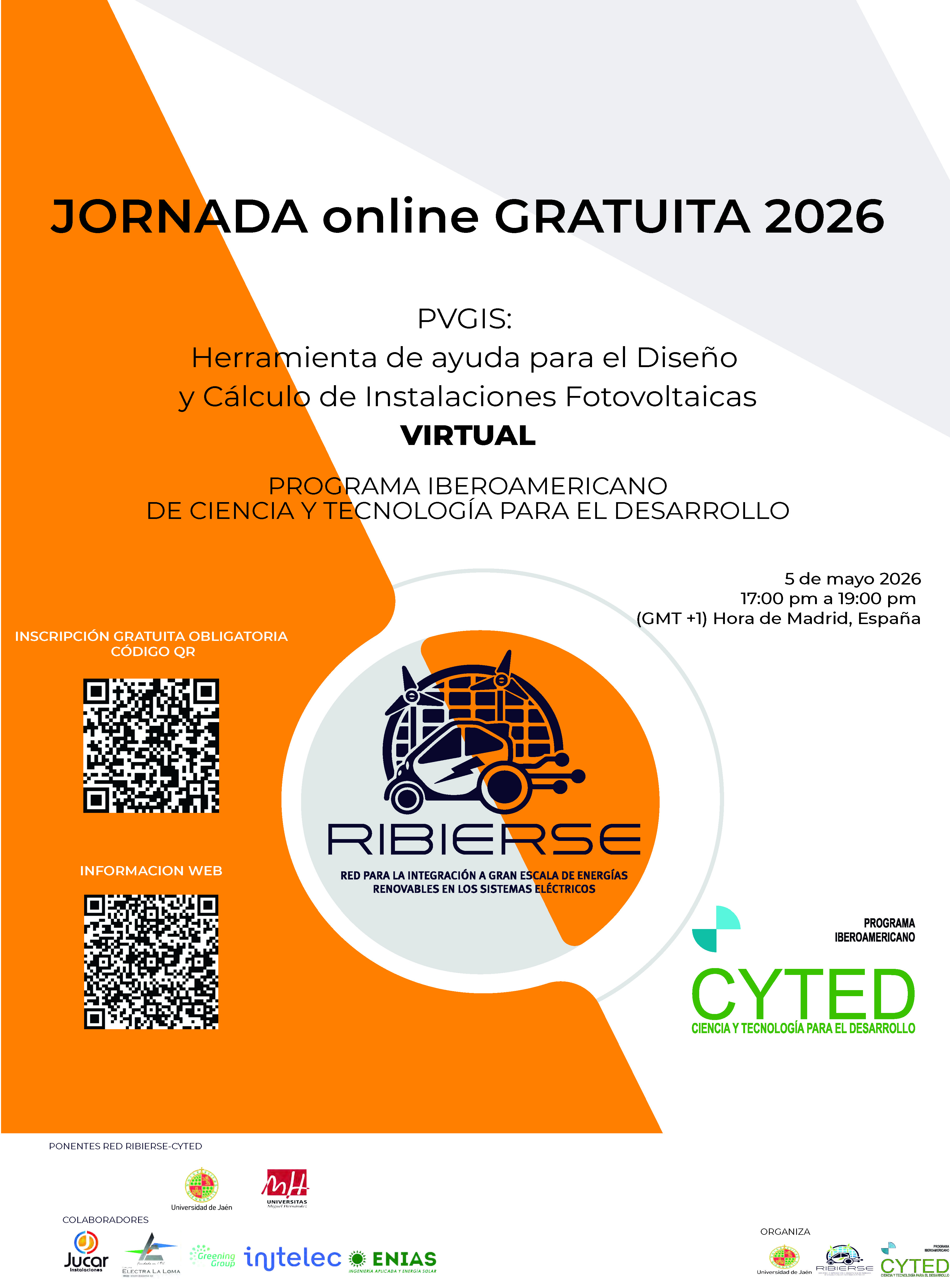 La Jornada tiene como objetivo principal dar a conocer la base de datos online y gratuita PVGIS para la consulta de datos de irradiancia e irradiación solar y que permite en sus diferentes menús y configuraciones obtener la generación eléctrica anual y mensual de una Instalación Solar fotovoltaica (ISF) ubicada en cualquier parte del mundo y con unas condiciones y características concretas de instalación. PVGIs es una herramienta de ayuda para el diseño y dimensionamiento de instalaciones solares fotovoltaicas. Se plantearán ejercicios y ejemplos de consulta de niveles de irradiación y de generación eléctrica mensual, diaria y anual, pérdidas del sistema, etc.de instalaciones fotovoltaicas a partir de sus datos característicos.