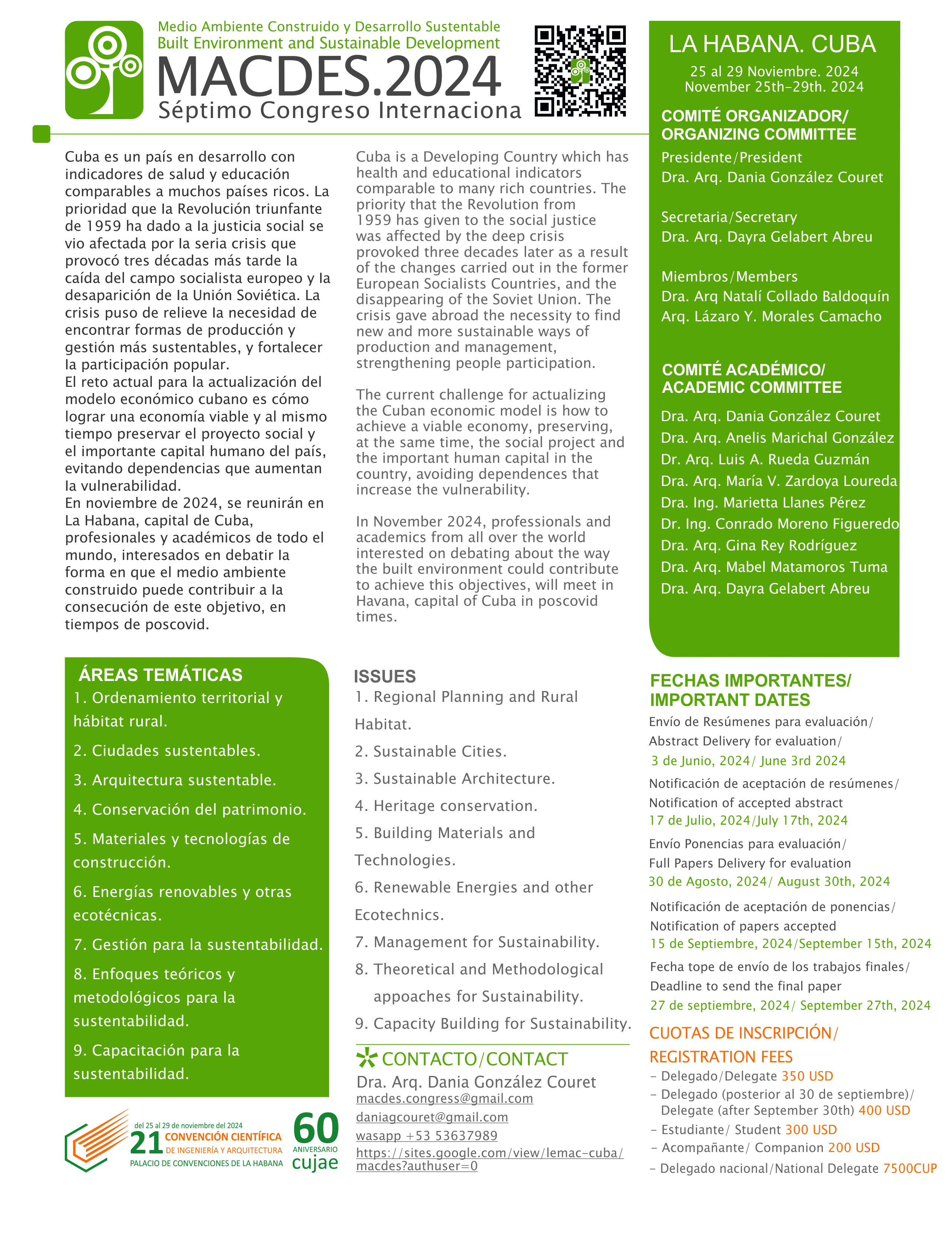 Congreso Internacional Medio Ambiente Construido y Tesarrollo Sustentable MACDES 2024