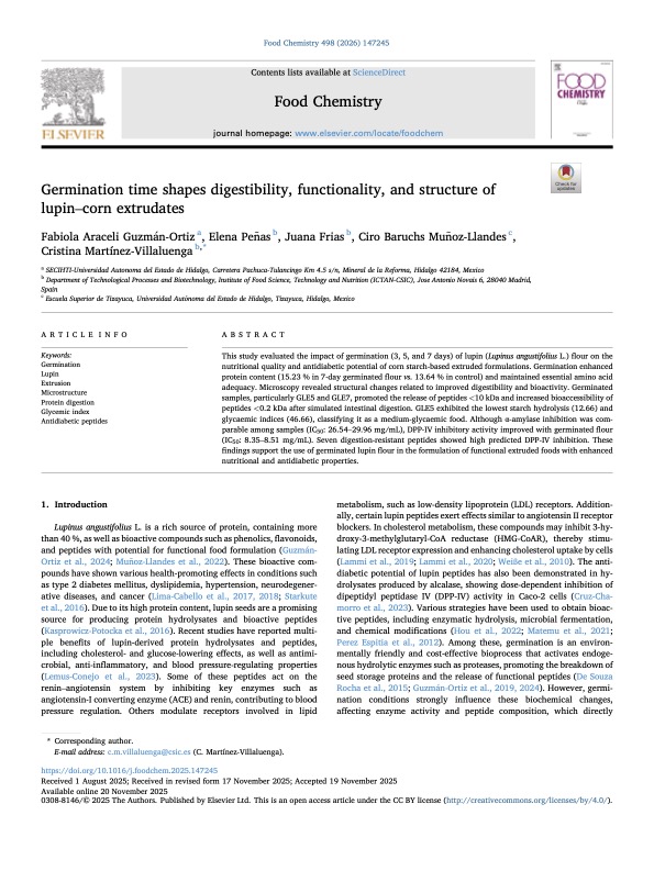 Germination time shapes digestibility, functionality, and structure of lupin-corn extrudates