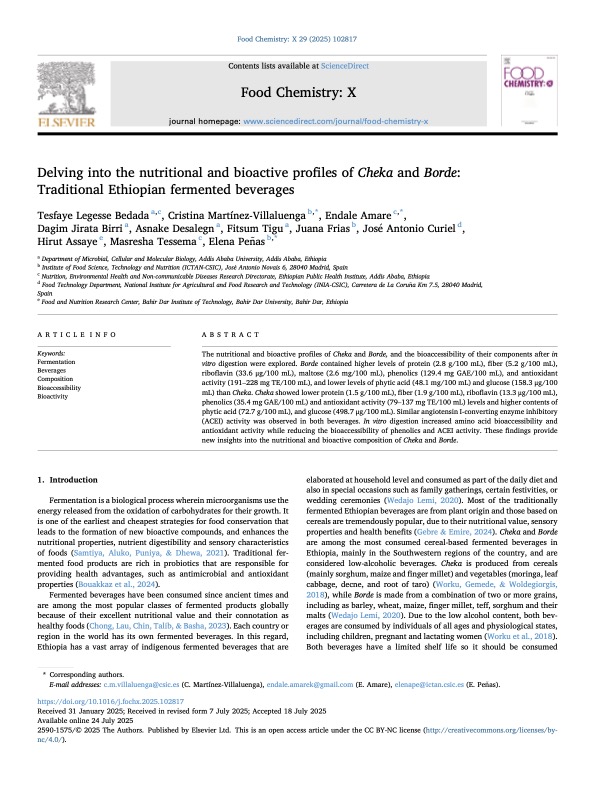 Delving into the nutritional and bioactive profiles of Cheka and Borde: Traditional Ethiopian Fermented Beverages.