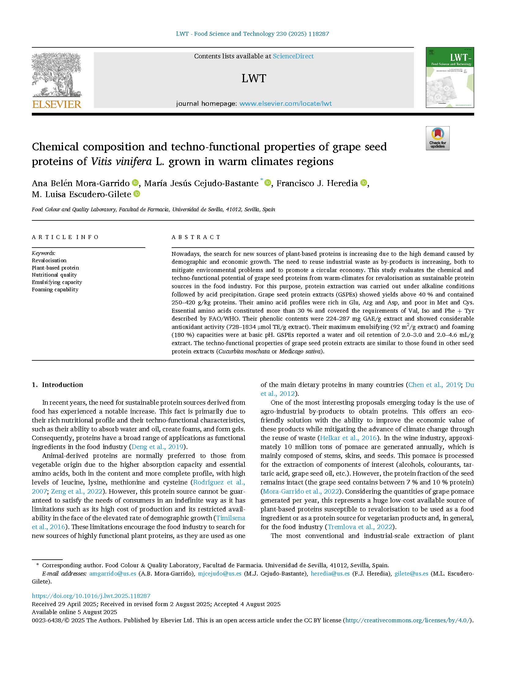 Chemical composition and techno-functional properties of grape seed