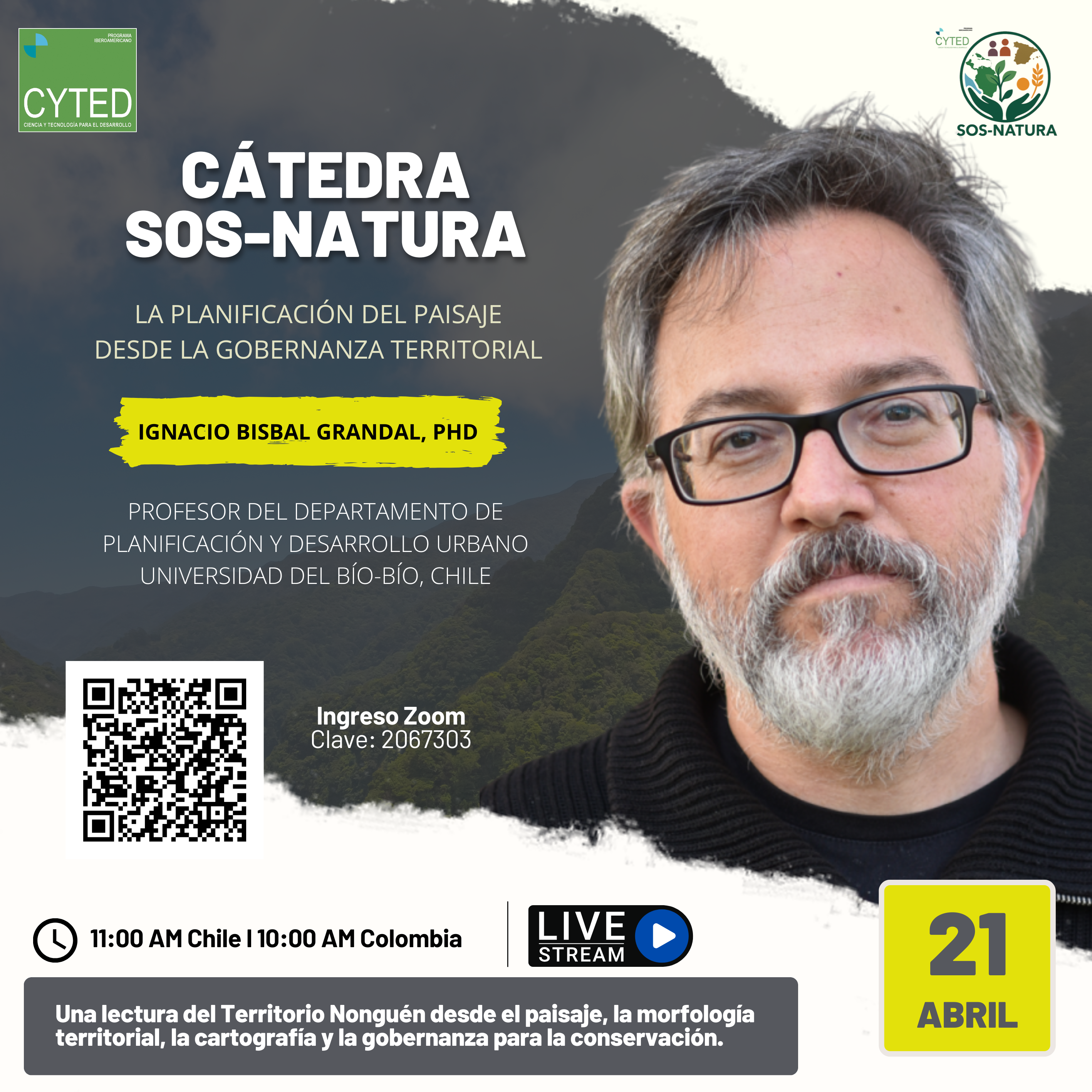 La Red SOS-NATURA te invita a una nueva Cátedra internacional con Ignacio Bisbal Grandal, PhD, profesor del Departamento de Planificación y Desarrollo Urbano de la Universidad del Bío-Bío (Chile).