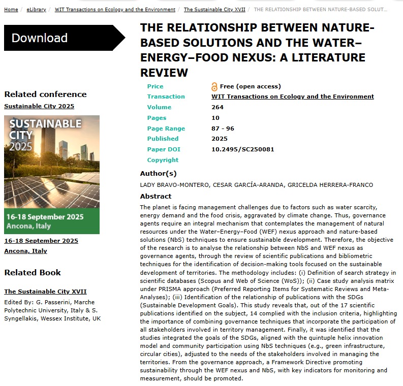 THE RELATIONSHIP BETWEEN NATURE-BASED SOLUTIONS AND THE WATER?ENERGY?FOOD NEXUS: A LITERATURE REVIEW