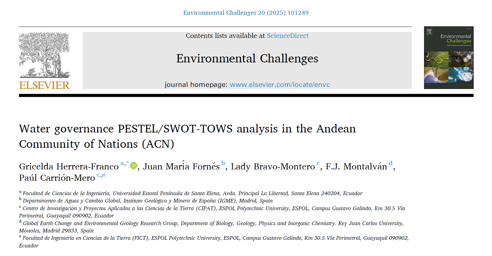 Water governance PESTEL/SWOT-TOWS analysis in the Andean Community of Nations (ACN)