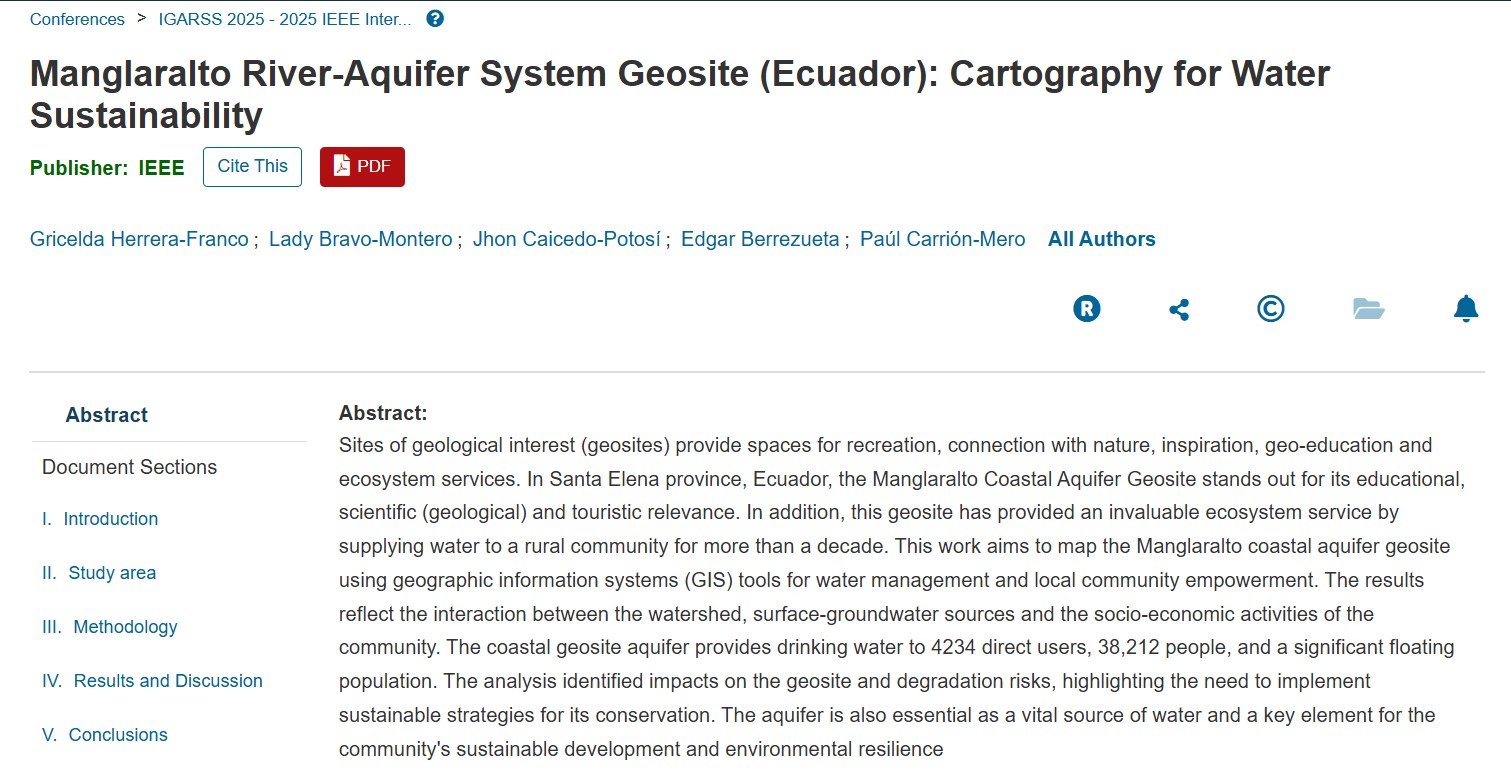 Manglaralto River-Aquifer System Geosite (Ecuador): Cartography for Water Sustainability