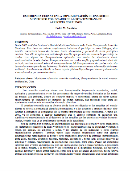 Experiencia cubana en la implementación de una Red de monitoreo voluntario de alerta temprana de arrecifes coralinos