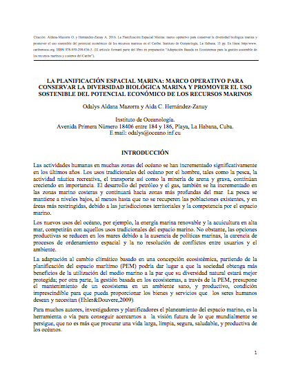 Adaptacio?n basada en Ecosistemas: alternativa para la gestio?n sostenible de los recursos marinos y costeros del Caribe