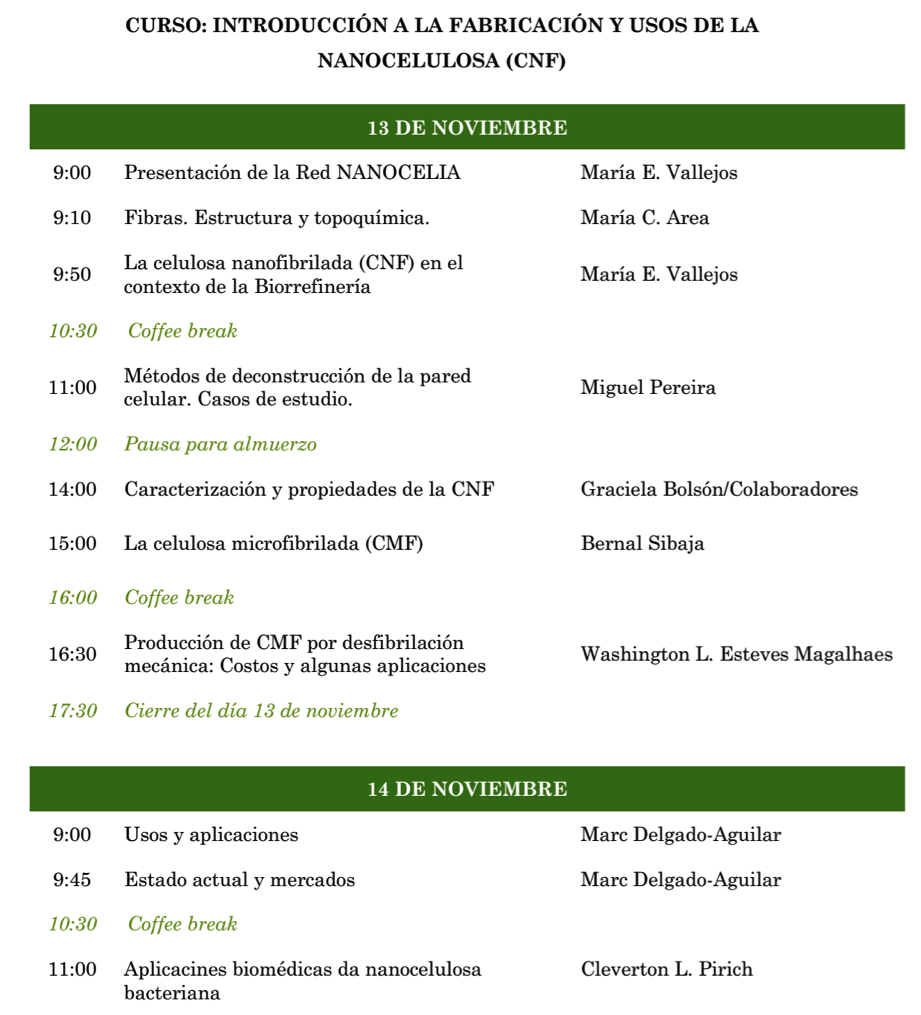 Curso “Introducción a la fabricación y usos de la nanocelulosa”