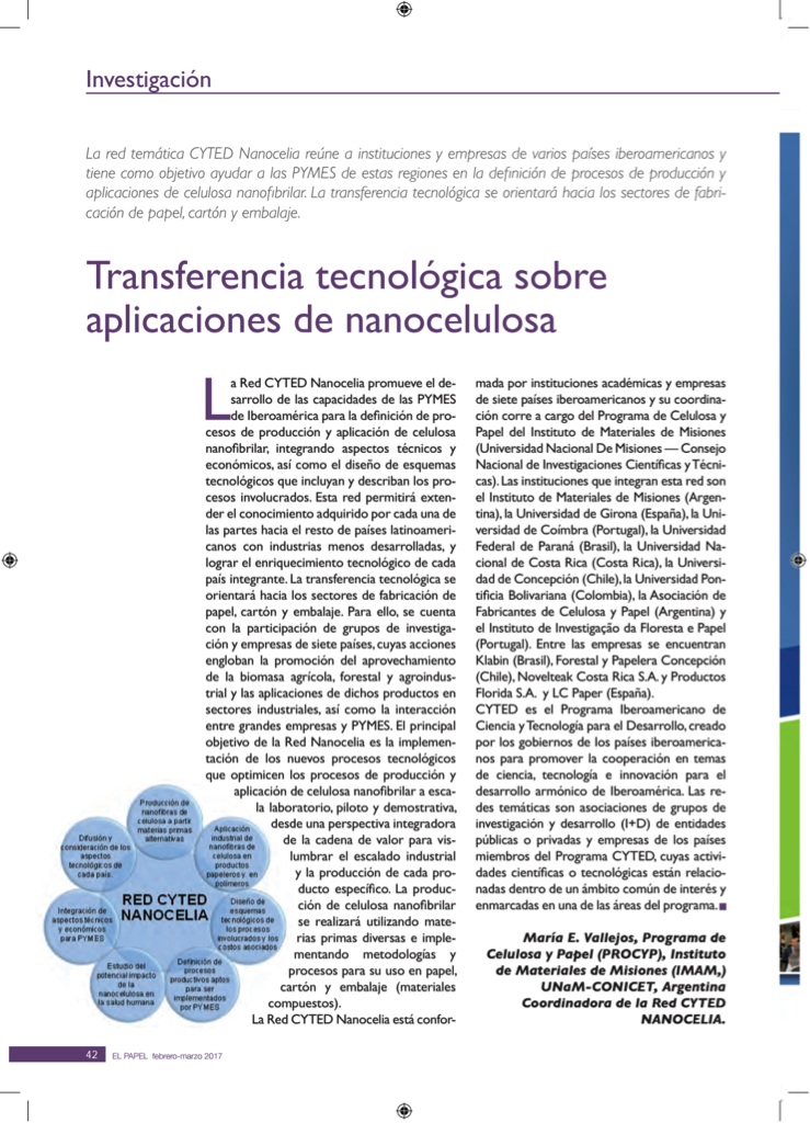 Nota sobre la Red CYTED-NANOCELIA en la revista El Papel.