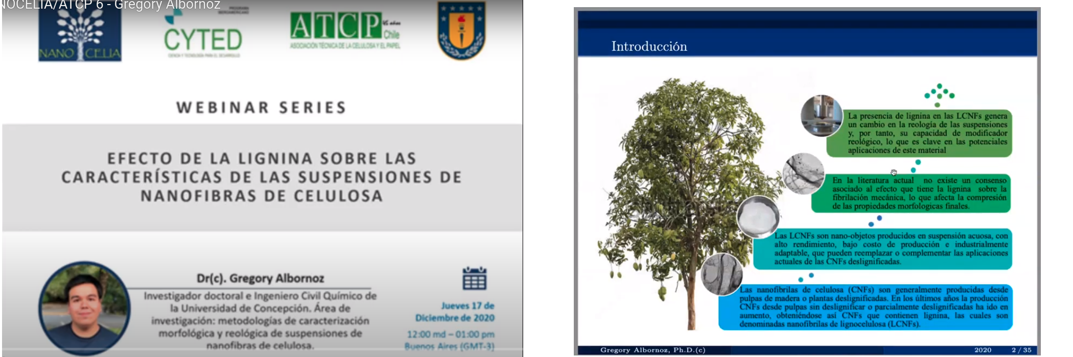 Seminario Virtual “Efecto de la la lignina sobre las características de las suspensiones de nanofibras de celulosa” presentado por el MSc. Gregory Albornoz del Departamento de Ingenieri?a Qui?mica, Universidad de Concepcio?n (UdeC, Chile).