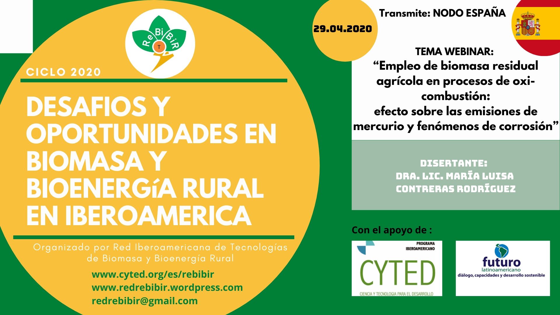 En está oportunidad el mismo estará a cargo del grupo CIEMAT (España) y si titulará "Empleo de biomasa residual agrícola de oxi - combustión: efecto sobre las emisiones de mercurio y los fenómenos de corrosión"