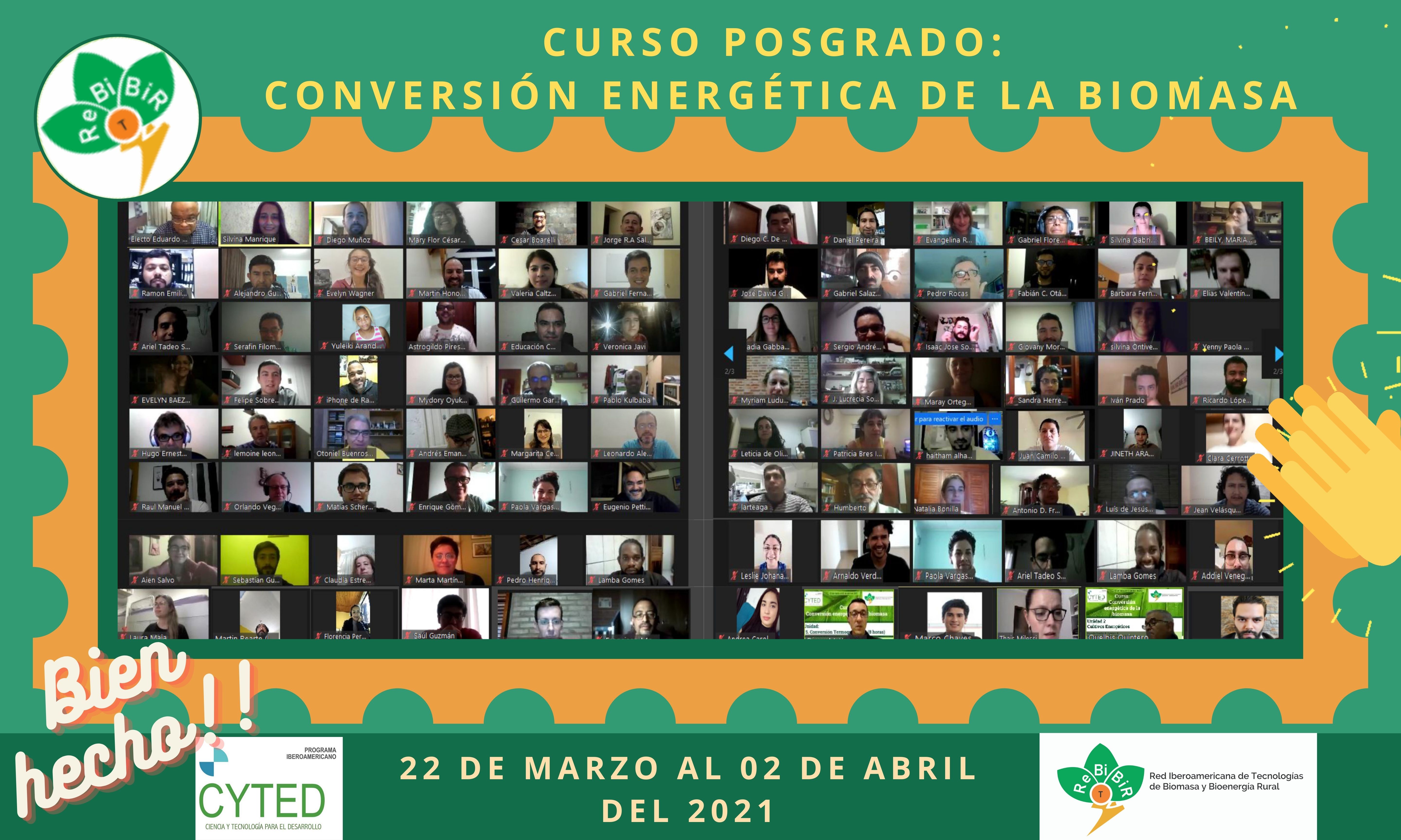 El curso de posgrado titulado “Conversión energética de la biomasa” se impartió desde el 22 de marzo al 02 de abril del 2021, de manera virtual, para un total de 130 participantes provenientes de 16 países de la Región.