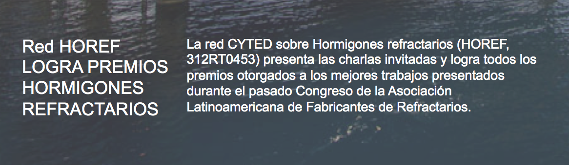 La red CYTED sobre Hormigones refractarios (HOREF, 312RT0453) presenta las charlas invitadas y logra todos los premios otorgados a los mejores trabajos presentados durante el pasado Congreso de la Asociación Latinoamericana de Fabricantes de Refractarios.