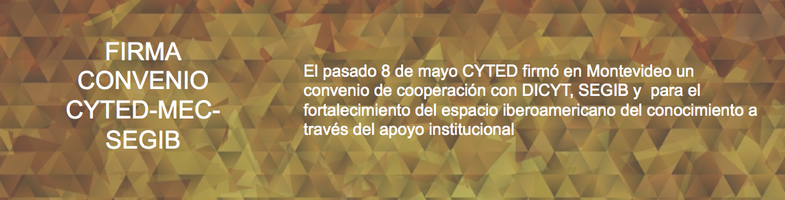 El pasado 8 de mayo Cyted firmó en Montevideo un convenio de cooperación con la Dirección de Innovación, Ciencia y Tecnología para el Desarrollo del Ministerio de Educación y Cultura de Uruguay (DICYT) y la oficina Subregional para el cono sur de la Secretaría General Iberoamericana (SEGIB) para el fortalecimiento del espacio iberoamericano del conocimiento a través del apoyo institucional. En convenio se firmó por David González Berrutti (Director de DICYT), Alejo Ramirez (Director Subregional para el Cono Sur de SEGIB), y Alberto Majó Piñeyrúa (Secretario General de CYTED).