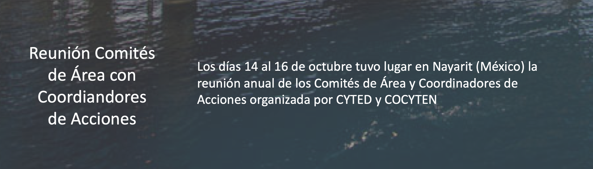 Los días 14, 15 y 16 de octubre tuvo lugar en Nayarit (México) la reunión anual de Comités de Área con Coordinadores de Acciones organizada por la Secretaría General de CYTED y el COCYTEN de México. En el acto inaugural, participaron Juan José González Parra, Director General del Consejo de Ciencia y Tecnología del Estado de Nayarit, el Dr. Manuel Ángel Uribe Vázquez, Director del Tecnológico Nacional de México, la Maestra Liliana Jiménez Alcocer, Directora de Cooperación Internacional del Consejo Nacional de Ciencia y Tecnología, Miguel Ignacio Navarro Gutiérrez, Rector de la Universidad Tecnológica de Bahía de Banderas y el Dr. Oscar Manuel Cóbar Pinto, Secretario General del Programa Iberoamericano de Ciencia y Tecnología para el Desarrollo.